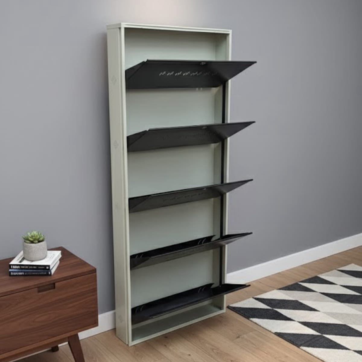 - Helps in quick and easy selection of footwear : view all your shoes and footwear in one place. All the shelves swivel open/close together.